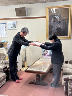 2026.2.20(金)【MS・MJリーダーズ】中高生防犯ボランティア2026年度活動ポスターに、本校生徒の作品が採用され、感謝状授与式が本校にて行われました。