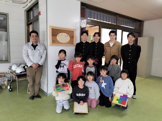 また、園児の皆さんに楽しんでいただけるよう、生徒が手作りしたパズルを寄贈いたしました。