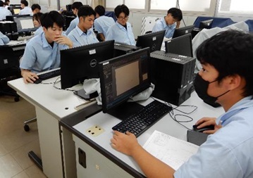 4月から製図ノートや製図台を利用して、図面の書き方の基礎を手書きで学び課題に取り組んできました。今回はその基礎的な知識に加え、コンピュータを利用した製図(CAD)を学んでいきます。