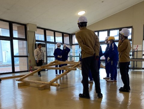 くぎや接着剤などを使わず、木を組み合わせただけの橋をつくり、構造力学の基礎を学びます。