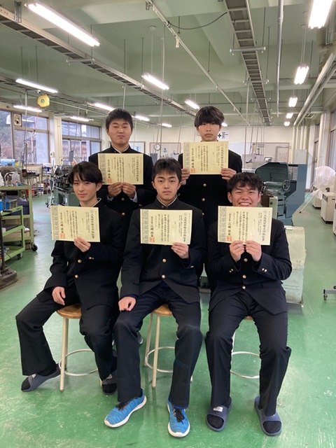 令和7年度 前期技能検定(3級普通旋盤作業)に機械工学部の生徒5名(未所属の生徒1名を含む)が合格しました。