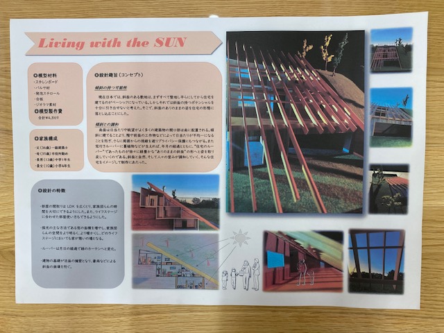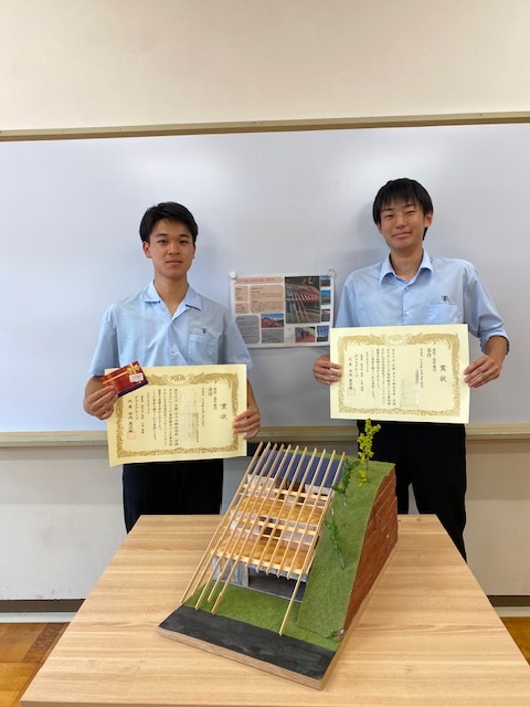 7月18日(金)建設工学部3年生2名が、表彰伝達にて表彰してもらいました。初めて設計コンペに出場し、全国から187点もの応募がある中、見事佳作に入ることができました。写真のアングルにこだわり、模型作りを遅くまで頑張ってプレゼン資料を作りました。