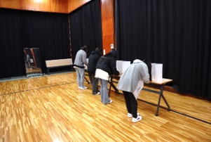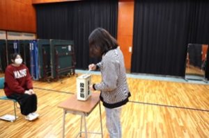 今回の生徒会役員選挙では、会長1名、副会長2名、書記2名、会計2名、会計監査委員2名が立候補しました。現職の生徒会役員に加え、新たに1年生の2名が生徒会役員に挑戦したいと立候補してくれました。18歳以上の生徒は選挙権を有するので、実際の選挙への意識を高める機会となりました。