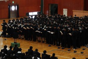 2月10日(火)4時間目に3年生を送る会を行いました。卒業を控える3年生は生徒会の思い出ムービーやお世話になった先生からのメッセージ動画を見ながら、懐かしい思い出に浸りました。お世話になった3年生へ、在校生を代表して生徒会メンバーから感謝の言葉を話した後、3年生代表生徒の熱い言葉や、3年生全員からの合唱がありました。来年以降の大商を託す後輩に向けて素晴らしい合唱を聞かせてくれ、素晴らしい時間となりました。