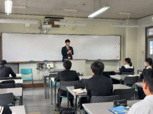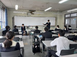 岐阜県教育委員会高校教育課主催で、教職希望者を対象に教職説明会を実施しました。当日は本校の卒業生で、現在は商業科の高等学校教諭として活躍されている先生にお越しいただき、教職のやりがいや、苦労されたことなど、卒業生という視点でお話しいただきました。説明会後の質疑応答では、絶え間なく生徒から質問があり、生徒の関心の強さがうかがえました。それに対応するように、講師の先生にもお答えいただき、生徒にとって非常に刺激のある時間になりました。