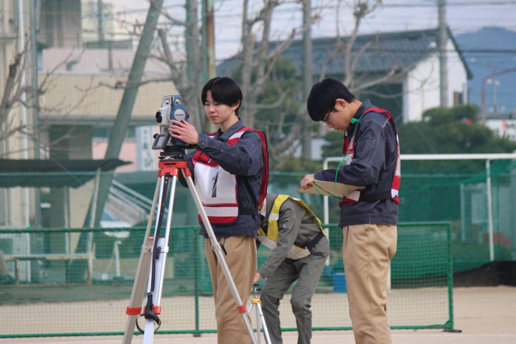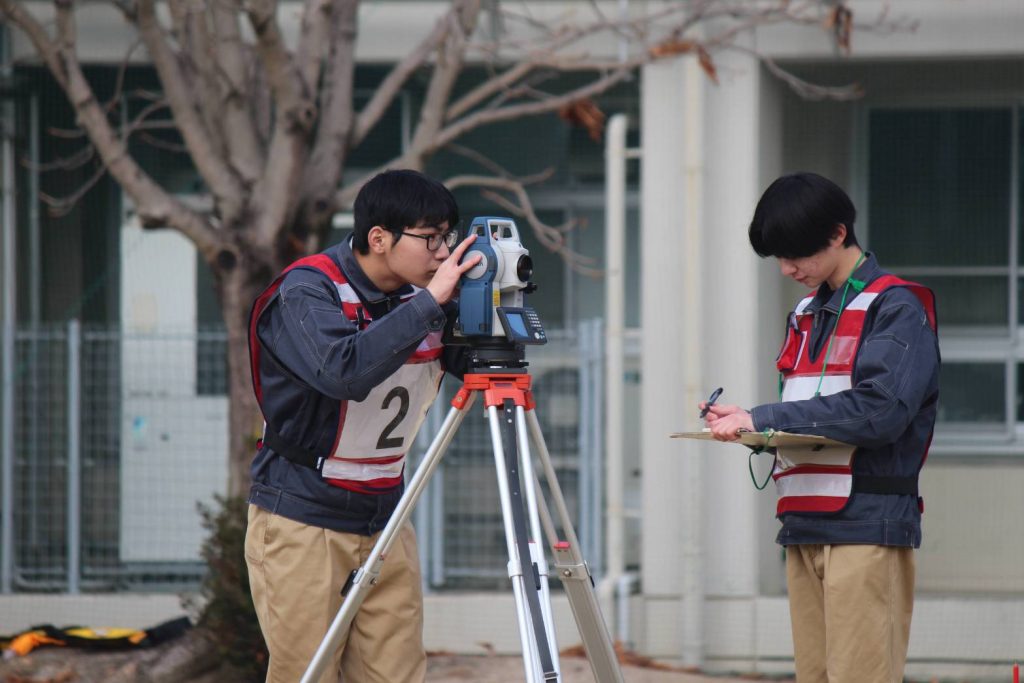 投稿日: 2025年12月19日2025年12月19日 投稿者: ogaki-ths建設工学部_ものづくりコンテスト測量部門 優秀賞受賞 12月13日(土)に開催された高校生ものづくりコンテスト測量部門県大会において、建設工学部の4名が参加し、優秀賞を受賞しました。 大会では、五角形の角度・距離の測量や計算の精度をチームで競います。 今回の優秀賞は、大会経験者の上級生の熱心な指導と、他校との合同練習で磨いた技術の成果です。 来年度8月開催予定の東海大会への出場も決定しました。