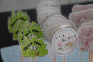 5月9日(金)放課後、11日(日)の「母の日」を前に、本校生徒・保護者等を対象に「校内カーネーション販売会」が行われました。2年生や3年草花専攻生が授業等で、350円の鉢植えと1,200円のバスケット(寄せ植え)の2種類を準備し、事前に注文を受けた方々に販売会場でお好みのカーネーションを選んでいただきました。購入していただいた方々に、3年専攻生が科目「地域資源活用」等の授業で製作したオリジナルのピック(「感謝」、「いつもありがとう」等)もプレゼントしました。