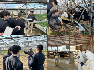 岐阜県西濃地域の農業の現状や課題発見等を学習することを目的として、農業科1年生を対象とした現地巡回学習会を12月10日(水)に開催しました。岐阜県西濃農林事務所、西南濃農業普及事業推進協議会、指導農業士連絡協議会西南濃支部の皆様のご協力のもと各種事業所を視察し、経営者や事業所代表の皆様から貴重なお話を伺いました。参加した生徒達からは、「それぞれの事業所の農業生産物に対するこだわりや仕事に懸ける情熱・思いに触れることができた」「農業生産の魅力だけではなく、経営を続けていくことの厳しさを学ぶことができて良かった」などの感想が聞かれ、大変有意義な時間を過ごすことができました。