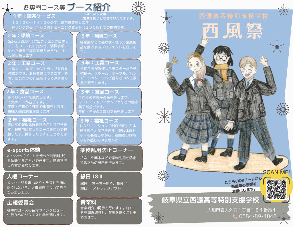 今年度の西風祭のテーマが決定いたしました。合わせて各ブースの内容やタイムテーブルをお知らせしますので右記の画像からご覧ください。