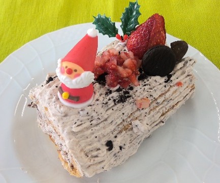 生活デザイン科3年生の食物コース調理の授業で、フランス発祥のクリスマスケーキ、ブッシュドノエルを作りました。スポンジケーキを焼き、1人1人が工夫したデザインでデコレーションすることが出来ました。3年生は調理実習が出来るのも残り少なくなりました。楽しい思い出になればいいなと思います。