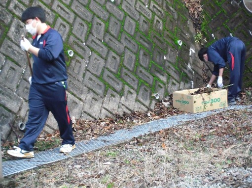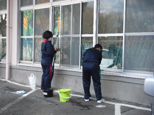 家庭クラブ員とボランティアを募って特別養護老人ホームハートフルの年末大掃除を行いました。今年も女子バスケ部も参加し65名の生徒が参加しました。施設周りの落ち葉拾いやベランダの手摺、網戸、渡り廊下など、施設の方が日頃できない場所を掃除しました。寒い中の清掃活動となりましたが、やり終わった後の達成感は格別でした。