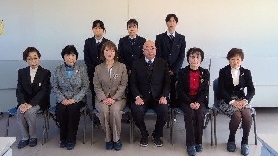 関有知高校生活デザイン科Sクラブは、国際ソロプチミスト関から助成を受けてボランティア活動や交流活動を行っています。年度末を迎え国際ソロプチミスト関の方々にご来校いただき、3年生Sクラブ員の激励会が行われ、これまで3年間の活動をねぎらい記念品をいただきました。今年度も清掃ボランティアや小学生とのふれあいクラブ、福祉作業所へのクッキー作りなど様々な活動を行うことが出来ました。来年度も後輩が活動を継続してくれます。