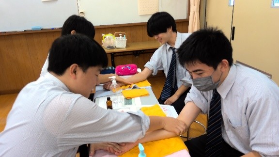 中部学院大学との連携により、生活デザイン科福祉コース2年生が中部学院大学短期大学部社会福祉学科 横山 さつき先生から「介護や看護に必要なコミュニケーション技法」~癒しや安心をもたらすケア・セラピーの活用~と題した講義を受けました。認知症の人は不安を抱えながら生活しています。普段の生活の中でどのように接していったらいいのかを学び、福祉の仕事の中で癒しや安心をもたらすケア・セラピーとして様々な方法があることを知りました。中でも今回はハンドオイルリフレクソロジーの手技を実際に教えていただき生徒同士で行い、香りやマッサージでお互いが癒され距離が縮まることを実感しました。受講した内容を将来の進路選択や職業選択に役立てたいと思います。