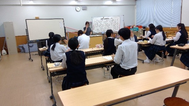 生活デザイン科3年生食物コース15名が飾り巻きずしの講習会を受講しました。以前、アイスボックスクッキーを教えていただいた長屋先生に講師をしていただき、花寿司を作りました。花びらの大きさなど全体のバランスが良いのか包丁を入れるまで不安でしたが、きれいな花をつくることができました。お正月などおめでたい日にも作ってみたいと思いました。