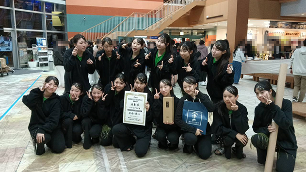 本校書道部は予選を勝ち抜き、15名(2年次9名、1年次6名)で参加しました。12校が出場した中、見事「ドリームプラザ賞」を受賞しました。