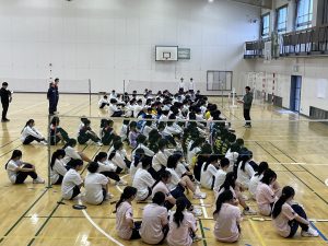 バレーボール、バドミントン、卓球、フットサルの4種目が行われ、クラス一丸となって優勝を目指しました。1年生が3年生を敗るチームがあったり、種目優勝したチームと先生チームとのエキシビションマッチが行われたりと、大いに盛り上がった1日となりました。