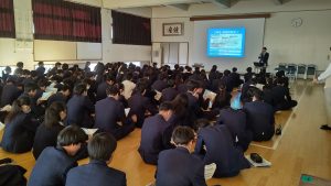 11月6日に、武道場にて進路説明会が行われました。進路指導部長の石田先生よりお話があり、受験に向けて今から準備しても早すぎることはないと学びました。改めて受験への意識が高まる集会でした。