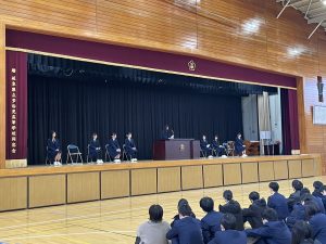 生徒会立会演説会が行われました。 投稿日時: 2026年2月12日 投稿者: tajimi-hs 2月10日(火)に、来年度前期の生徒会の役員を決める立会演説会が行われました。立候補者は、それぞれの公約を在校生に向けて熱く語っていました。