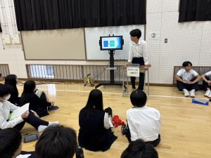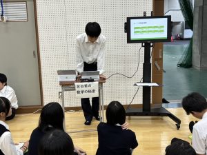 10月16日に本校体育館にて、総合的な探究の時間の中間発表会が行われました。聞き手は来年同じ取り組みを行う1年生。練習した発表内容に加え、発表の質疑応答にもしっかりと対応していました。今後の取り組みへの参考になるような質問もあり、互いに有意義な時間となりました。