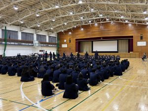 4月9日(木)の1限に新1年生と2,3年生が初めて顔を合わせました。生徒会執行部が運営をし、吹奏楽部による演奏や学校を紹介する動画を流すなど、多治見高校の魅力を発信しました。新1年生も多治見高生としての自覚が芽生える良い式となりました。