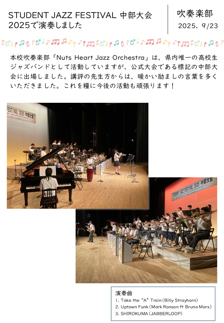STUDENT JAZZ FESTIVAL 中部大会 2025