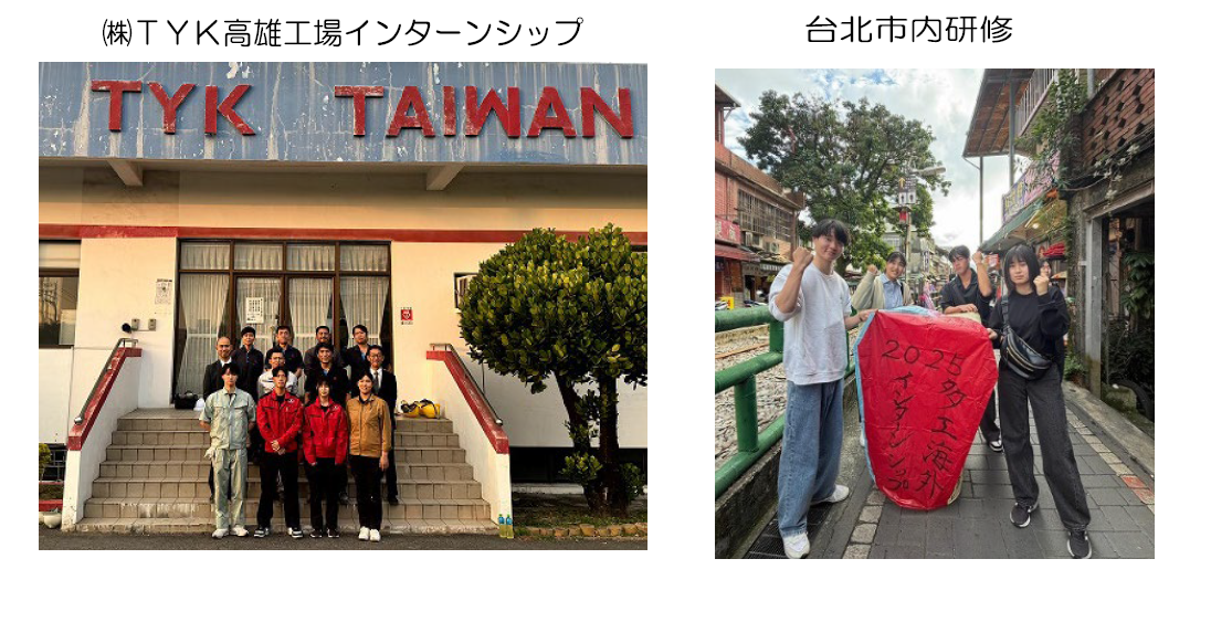 インターンシップ・海外インターンシップ インターンシップ 地域の企業等と本校が連携して、希望する生徒に対して就業に関する体験的な学習(インターンシップ)をキャリア教育の一環として2年生の2月に行っています。 海外インターンシップ 令和7年12月14日~18日に台湾へ2年生4名が海外インターンシップを行いました。 令和6年12月15日~19日に台湾へ2年生2名が海外インターンシップを行いました。