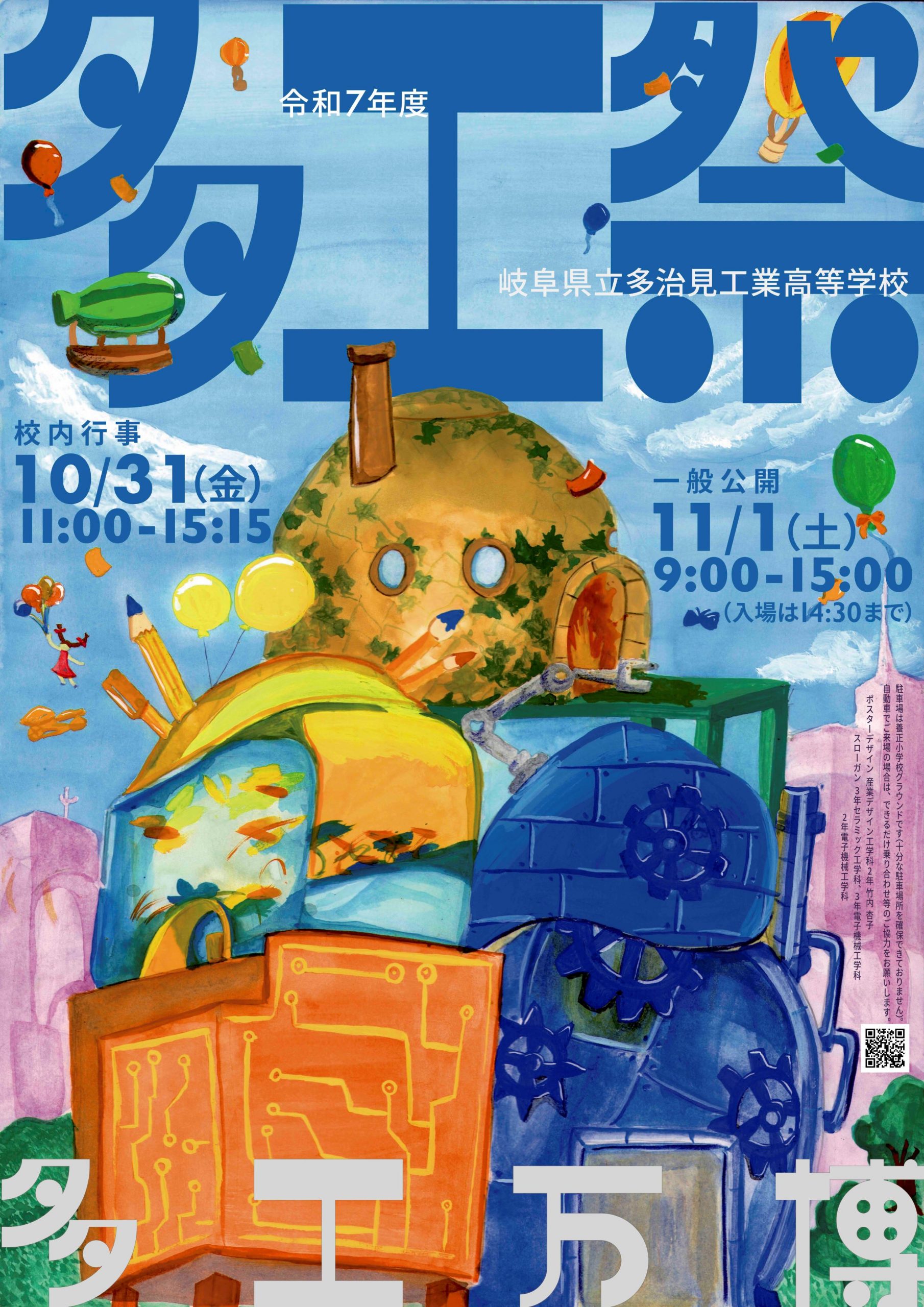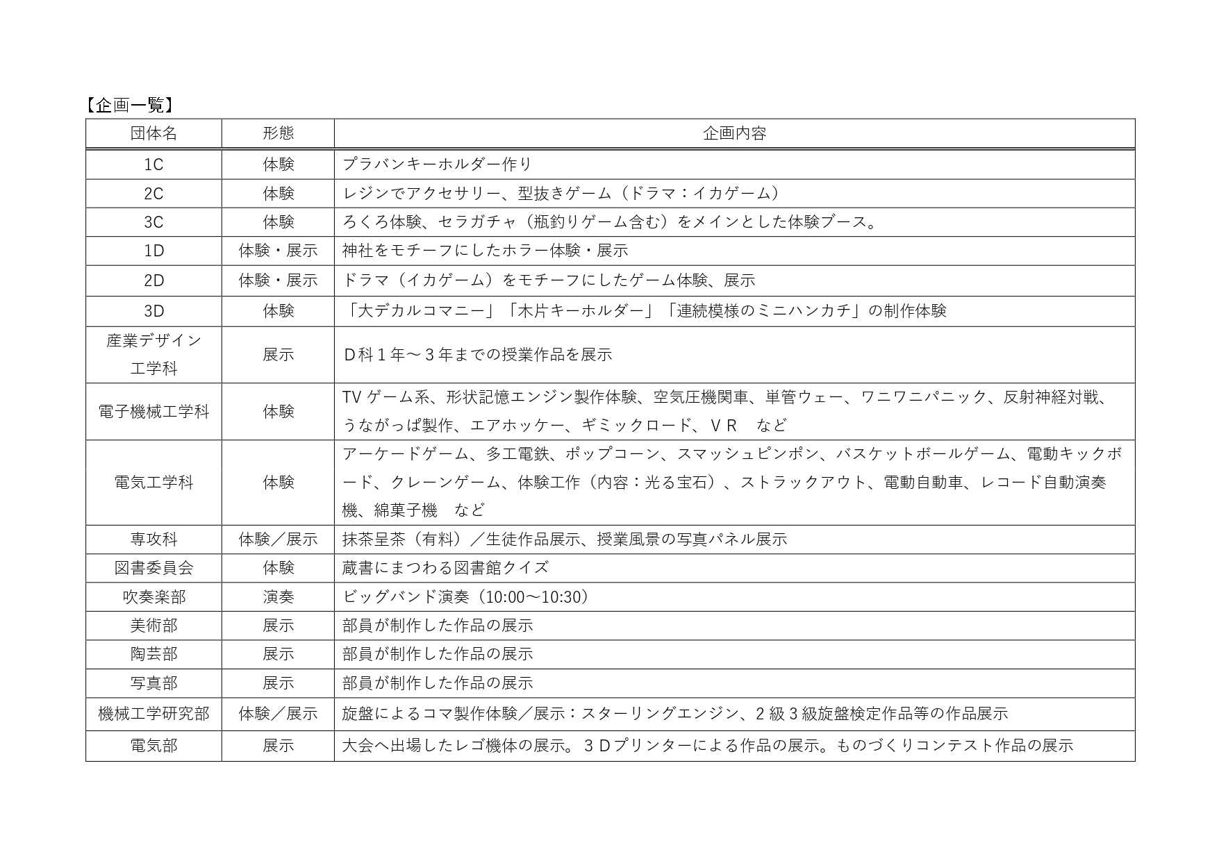 工業高校ならではの「ものづくり」を知ってもらう大切なPRの場であり、日頃の学習成果をもとに、来場者をもてなし、楽しんでもらうことを目的として、毎年秋に開催されています。各学科の特色を生かした様々な企画で盛り上がります。