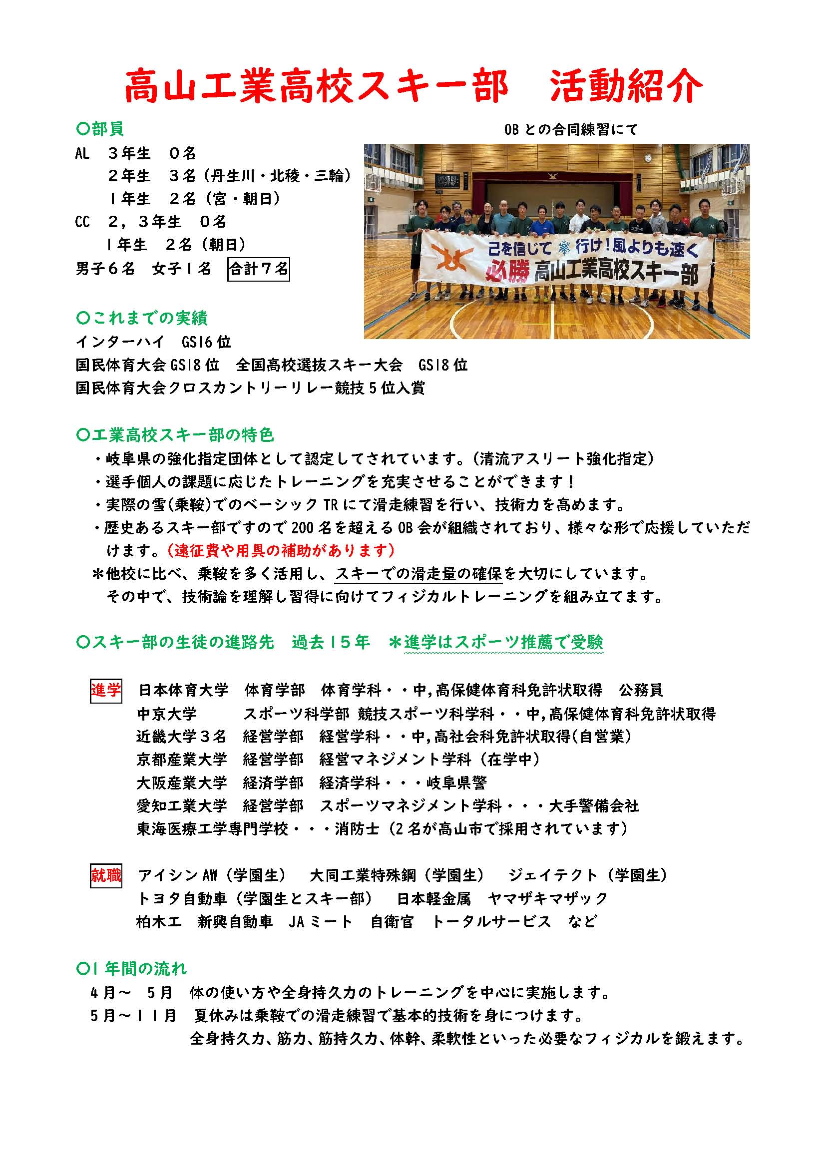 ①令和7年度高山工業高等学校ハンドボール部練習会開催について