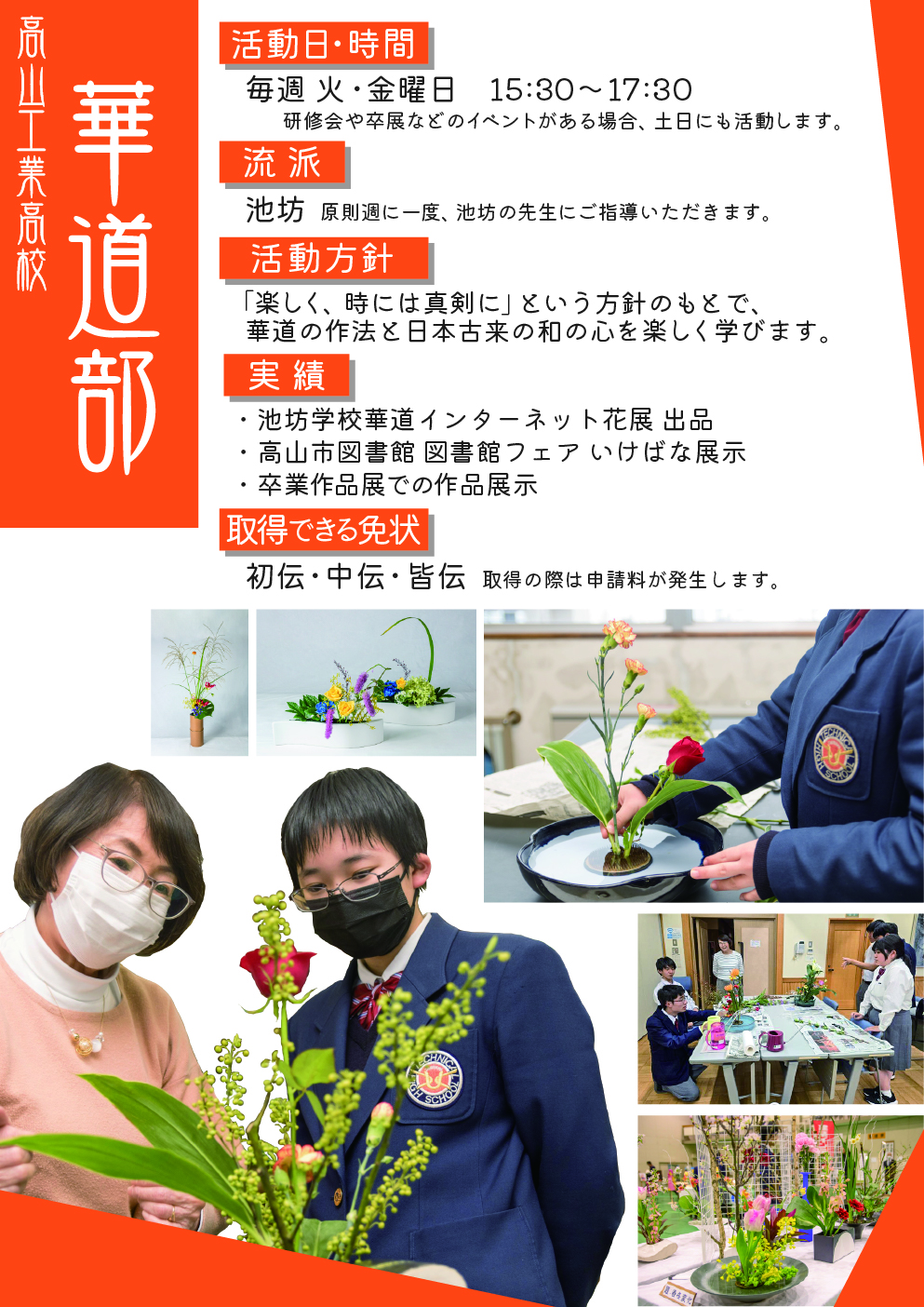 内容 スクールライフ紹介(生徒会)、ものづくり体験、学科の説明、