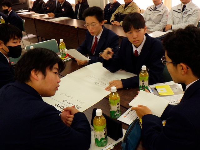 11月11日(火)、建築インテリア工学科1年生が岐阜県都市建築部と連携し実施した交流サロンに参加し、建設企業の方々との懇談を行いました。