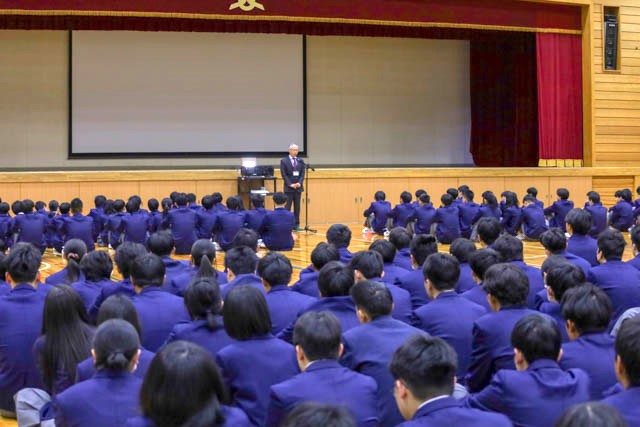 また、部活動紹介に先立ち昨年度3月に大会を終えたスキー部の表彰が行われました。県大会の団体総合優勝や、本校生徒として24年ぶりに全国大会入賞となった建築インテリア工学科3年 今村さんが表彰されました。