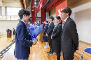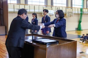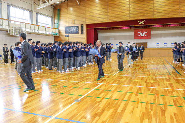 3月23日(月)体育館にて3学期の終業式ならびに表彰式を実施しました。また、終業式に先立って学校後援会からの表彰も行われました。