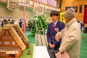 年度末には卒業生が課題研究の授業で1年がかりで作り上げた作品を披露する、卒業作品展が開催されます。各科各班で作り上げた作品や研究成果を、入場者の方に直接ご案内します。地域の方々を中心に多数のご来場をいただいています。会場内では美術部の作品展示や、茶道部によるおもてなし、華道部による生け花展示、育友会による日用品マーケット(バザー)なども同時開催されます。