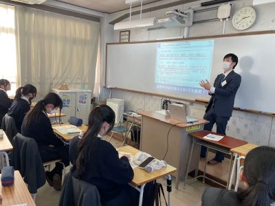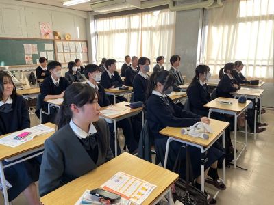 1年生は、ベネッセの方からお話をいただき、10月に受験したベネッセ基礎力診断テストの振り返りとともに、この結果を次に生かし、進路を考えていくLHRを行いました。ベネッセの方は、「現在地を知らないと、次の行き先を探せない」と言われ、現在の学力と自分の強み弱みを知る、そこからどのように学力を伸ばし、自分の進路決定に繋げていくかということを話されました。1年生は「5月から成績がUPした!」「Dゾーン(成績の最低ゾーン)がまだある」などの声があがり、2年生に向けて自分の現在地を確認できたようです。今後の自分の進路選択に生かしていきます。