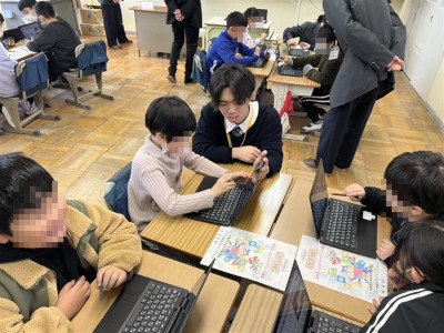 ビジネス情報科プログラミングコース3年生は、12/22(月)と24(水)の両日、上之郷小学校にて「高校生によるプログラミング講座」を開講し、小学3年生から6年生の各学年で2コマずつScratchを使ったプログラミング講座を実施しました。どの学年も同じ指導内容でしたが、たくさんの小学生から「楽しかった」の声をいただきました。Scratchの使い方とアルゴリズムの考え方を、小学生に分かりやすく、楽しく学んでもらうために講座内容を工夫しました。今後も授業の中で得た知識や技術をアウトプットする機会を設け、地域とのふれあいを増やしていきたいと思います。