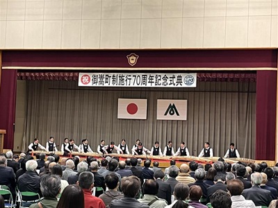 11月16日(日)に、向陽中学校体育館で、御嵩町制70周年記念式典が行われ、本校の箏曲部がオープニングを、吹奏楽部がフィナーレを飾る演奏をさせていただきました。式典は厳かな雰囲気の中粛々と進められましたが、伏見地区出身のピアニスト(梅田さん)の演奏を聴いたり、御嵩町の70年の歴史を動画で振り返ったりして貴重な経験をさせていただきました。