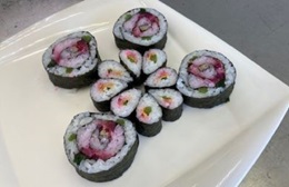 具材の置き方、巻き方など丁寧に教えていただき、完成したきれいな花の形をした華ずしの出来栄えに、とても感動しました。