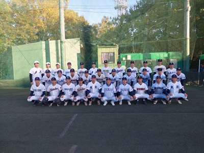 11月22日(土)に、中部学院大学グラウンド(関市)で「高校選抜大学選抜チーム交流試合」(主催:岐阜県高等学校野球連盟 東海地区大学野球連盟岐阜学生野球リーグ)が開催されました。本校の硬式野球部から 長谷部 慎太朗 君 吉田 光輝 君(共に2年生)の2名が、岐阜県の選抜チームの選手として出場しました。この交流試合は、「育成・強化」「技術の向上」などを目的として開催されました。普段対戦することのない大学生との試合でしたので、緊張した様子でしたが、とてもいい経験となりました。