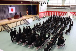 式では、校長より「これからも「大いに学び、考え、楽しむ」人生を送り、社会に貢献する素晴らしい人材として活躍されることを期待しています。」と式辞がありました。