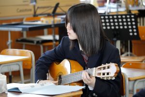 投稿日: 2025年5月13日 投稿者: tokikoryo-hs音楽Ⅰ(ギターの練習) 1年生は慣れないギターに苦戦中!! チューニングからゆっくりスタートです。 半年後には何が弾けるようになるか楽しみです