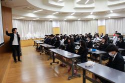 4月16日、2年次生を対象に伊藤祐輝様(カネコ小兵)より「下石どえらあええ陶器祭り」に関する講話をしていただきました。