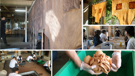 伊自良にある柿BUSHIさんにて、エプロンの柿渋染め体験を行いました。