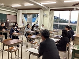 10月31日(金)放課後、1・2年生の希望者13名を対象に岐阜県教職説明会を行いました。毎年行われている説明会ですが、今回は市内中学校教諭と県内特別支援学校教諭の2名にお話をしていただきました。いずれも本校の卒業生です。最初に教員を目指した理由や教員になってよかったことなどを話してくださいました。その後の質問コーナーでは、生徒が輪になって教師を囲み自身が気になったことなどを積極的に質問する様子が見られました。生徒たちの感想からは、「教員の魅力を知ることができた」や、「学校で働きたいという思いが強くなった」という意見のほかに、「様々な職業について学び、進路選択をしていけるようになりたい」など、将来の自分について真剣に考え出した生徒もいました。
