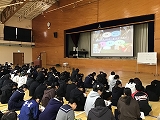 講話の中に出てきた「好きなこと得意なことを活かして、世界の役に立つためにできることがたくさんある。」という言葉が特に生徒たちの心に届いていました。そのほかにも生徒からは「誰かのために働くことで、自分のためにもつながるということがわかりました。」「人生なんてきっかけ一つという言葉が心に響きました。」「いろんなことに興味を持ち外を見てみることでたくさんの進路選択があるんだと実感しました。」などの感想がありました。生徒にとって進路選択や働くことに対する考え方が広がる講話になりました。