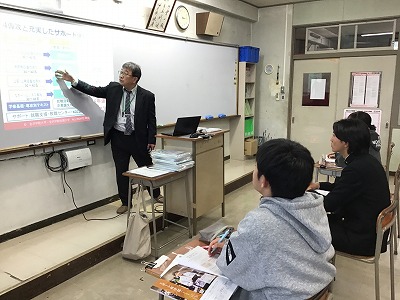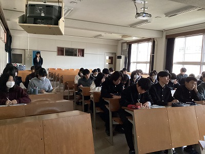 12月1日(月)に1,2年生対象の分野別進路説明会を行いました。就職(一般・公務員),進学(四大・短大・専門)の各分野で合計51講座が開かれました。生徒たちは希望する分野を2コマ受講し、講師の先生の話を真剣に聞き,積極的に質問をしていました。