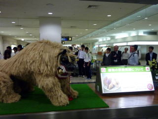 那覇空港では、大きな獅子が出迎えてくれました。右の写真は国際通りです、国際通りは