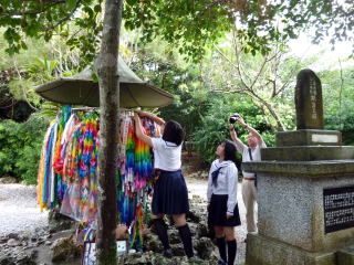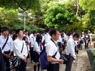 ひめゆりの塔とひめゆり平和祈念資料館では、まず千羽鶴を捧げ全員で黙祷をしました。