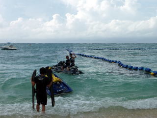 マリン体験をしている時間だけ、太陽が顔を出してくれました。生徒たちの願いが天に通じました。